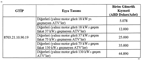 No: 2026/17)’in 1 inci maddesinde yer alan tablo aşağıdaki şekilde değiştirilmiştir.